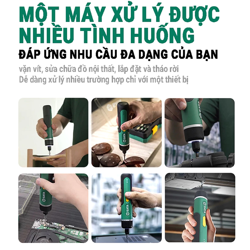 Bộ máy vặn vít dùng pin Sata 151051 (32 chi tiết) là giải pháp lý tưởng cho những ai cần một công cụ vặn vít nhẹ nhàng mà mạnh mẽ. Với thiết kế nhỏ gọn và tiện lợi, sản phẩm này giúp bạn dễ dàng thực hiện các công việc sửa chữa và lắp ráp trong gia đình hoặc trên công trường. Bộ máy vặn vít dùng pin Sata 151051 (32 chi tiết) trang bị pin lithium-ion 2000mAh, cho thời gian sử dụng lâu dài và hiệu suất tốt hơn. Cùng với tốc độ không tải lên đến 320 vòng/phút và mô-men xoắn tối đa 5.0N.m, bạn sẽ hoàn thành công việc nhanh chóng và hiệu quả hơn.